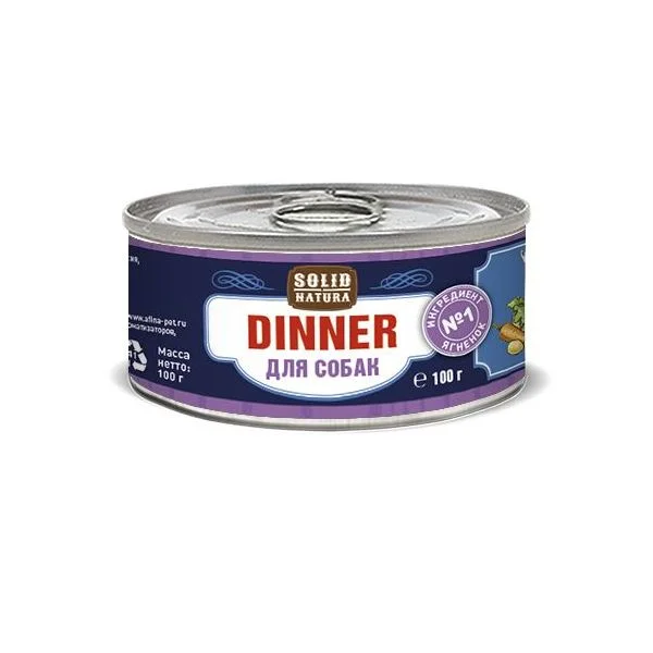 Ингредиенты: Ягнёнок 50%, субпродукты из говядины: печень 20%, рубец 10%, сердце 10%, желирующая добавка, растительное масло, соль, вода.