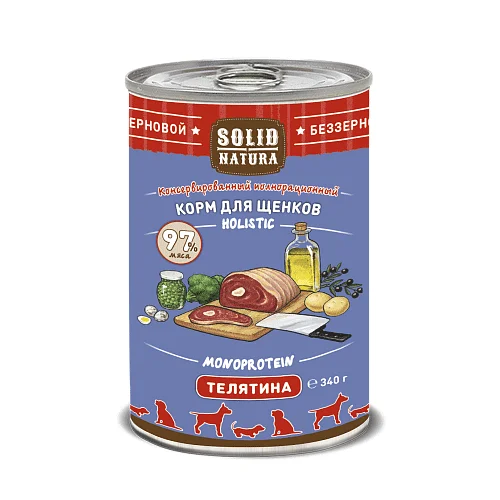 Консервированное влажное питание класса премиум для щенков. Беззерновое. Холистическое. Монопротеиновое. Одновременное применение данных качеств создаёт синергетический эффект.