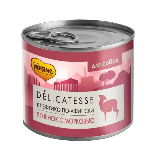 Влажный корм Мнямс Паштет из ягненка с морковью для собак всех пород "Клефтико по-афински" 200 г NEW