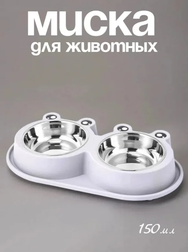Миска двойная на подставке с металлическими мисками предназначена для кормления кошек собак мелких пород, а также грызунов. Две съёмные чаши из нержавеющей гипоаллергенной стали и подставка с бортиками. Съемные чаши располагаются на оптимальном расстоянии от пола для кормления вашего питомца. Миски имеют шарообразную форму, поэтому частички еды не будут скапливаться в уголках как в обычных тарелках. Противоскользящие ножки делают изделие устойчивым при использовании. Чаши сделаны из нержавейки, а подставка выполнена из высококачественного пищевого пластика, который совершенно безопасен для животных. Такая миска отлично впишется в интерьер дома и обязательно понравится вашему питомцу.
