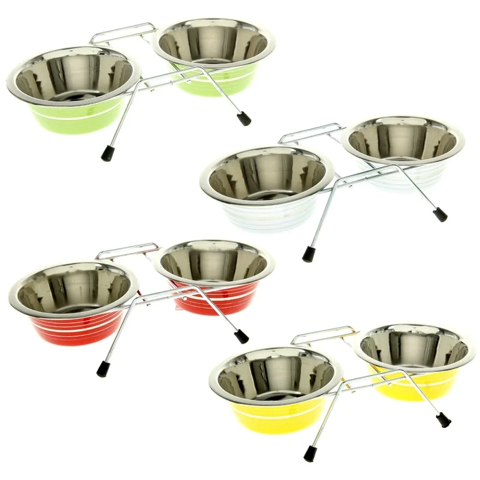 Набор: миска двойная цветная с полосой на подставке VM-3000(А), 2 х 200 мл 1097434