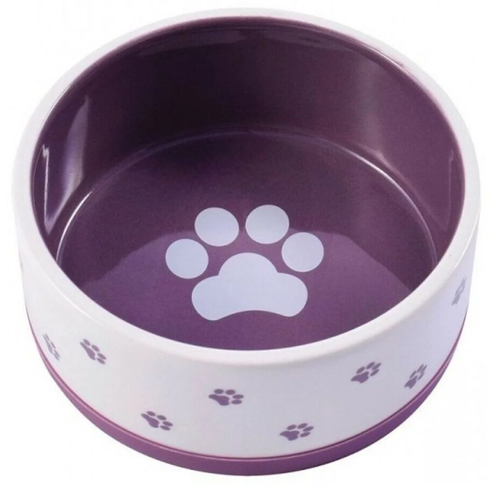 Миска Mr.Kranch керамическая нескользящая для собак 360 мл белая с фиолетовым
