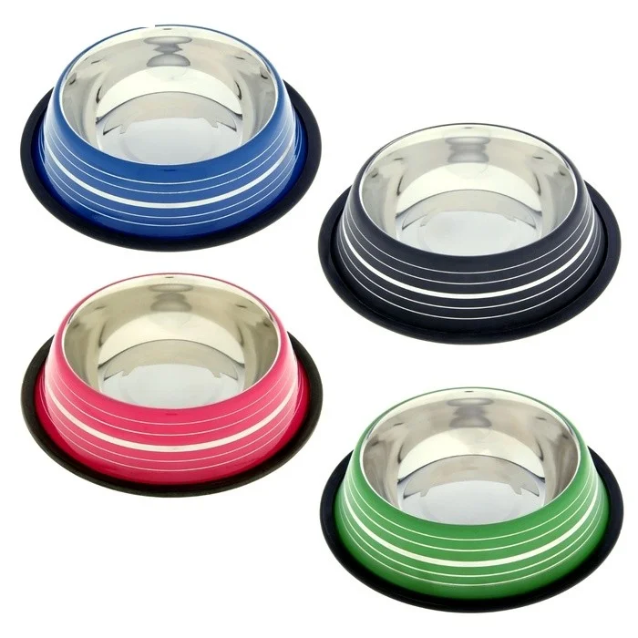 Миски металлические. Цветные с полоской. Немагнитные. изготовлены из нержавеющей стали с антискользящим покрытием. Подойдут для собак и кошек.