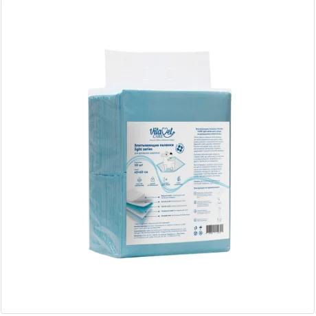Одноразовые впитывающие пеленки VitaVet для поддержания чистоты в доме.Ключевые особенности:Быстро впитывают влагу.Многослойная структура.Впитывающий слой нейтрализует неприятные запахи.Нижний слой предотвращает протекание.Незаменимы в поездке и переноске животных.Можно использовать в качестве наполнителя для лотка для собак мелких пород или кошек.Удобные и надежные впитывающие пеленки незаменимы для Вашего питомца, сохранят чистоту в доме и помогут избежать неловких ситуаций в гостях или в транспорте.Плотный нижний слой полностью исключает протекание, оставляя поверхности сухими.Пеленки можно использовать в качестве гигиенического покрытия, как дополнительную защиту поверхностей от протекания жидкости, при уходе за животными.Владельцам птиц и грызунов также пригодятся подстилки: они послужат отличной альтернативой газетам и наполнителям, а клетку станет гораздо проще убирать.Необходимо класть пеленку полиэтиленовым слоем вниз, менять по мере намокания.Используются в период лактации, в раннем возрасте животно