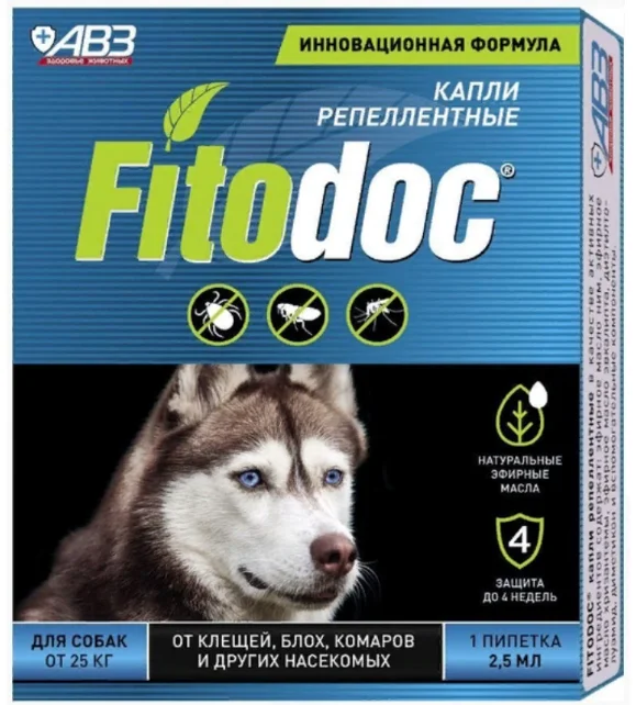 Капли репеллентные FITODOC® в качестве активных ингредиентов содержат: эфирное масло ним, эфирное масло хризантемы, эфирное масло эвкалипта, диэтилтолуамид, диметикон и вспомогательные компоненты.