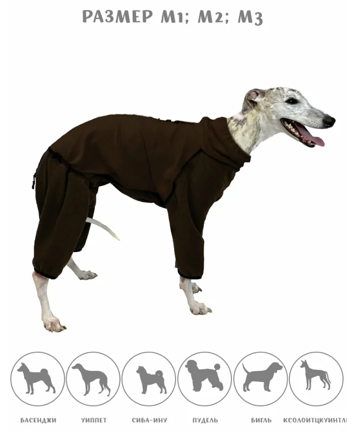 8039 Флисовый комбинезон для собак на молнии, цвет коричневый, размер M3